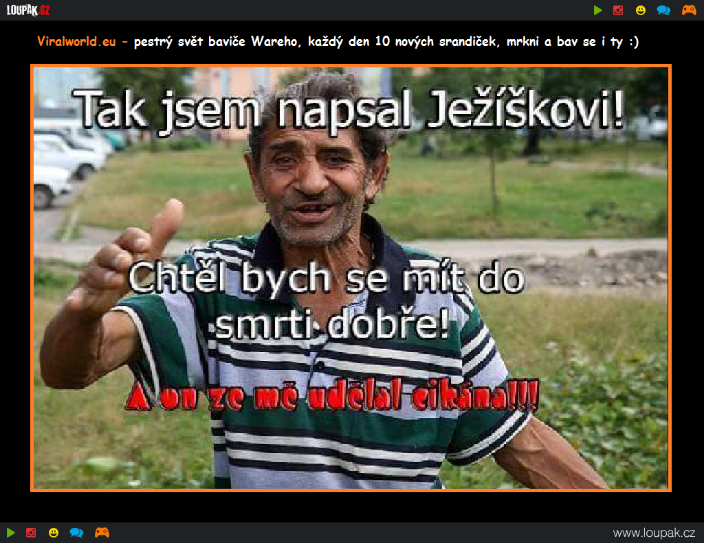 Sekce VTIPY nemůže na zábavném serveru jako je Loupak.cz chybět. Čeká na Vás přes 15 000 vtipů rozdělených do 37 kategorií. Speciální prostor je také věnován Chucku Norrisovi. Budeme velice rádi, když přidáte i Vy svůj oblíbený vtípek